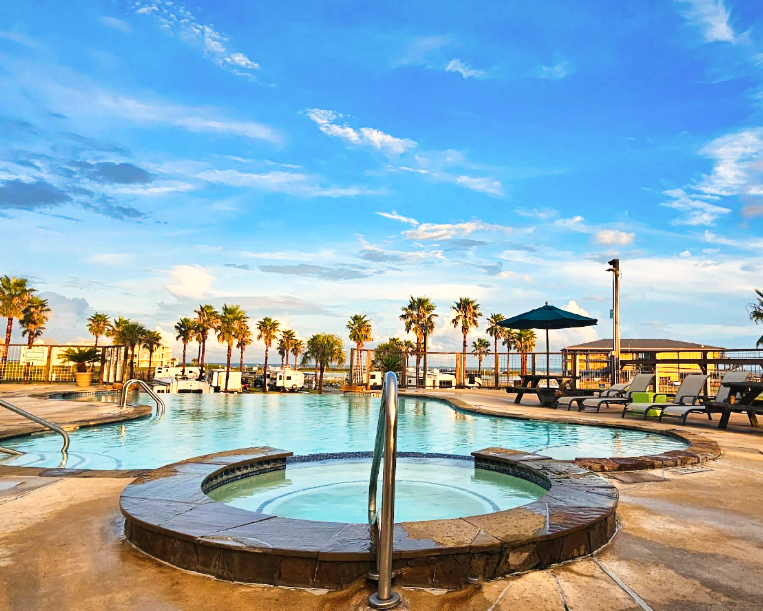 Experience laid-back coastal luxury at Sandpiper RV Resort—where the sand, surf, and seawall are just a short stroll away.
